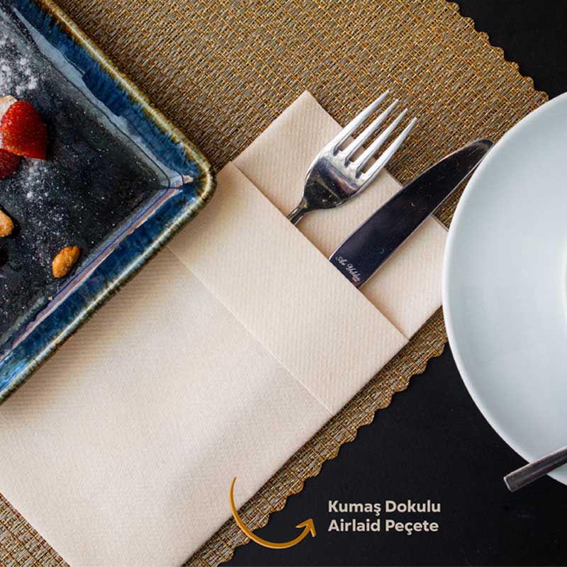 Üstün özellikleri sayesinde Airlaid Doğal Tekstil, tek kullanımlık masaüstü malzemeleri için yüksek kaliteli bir markadır.